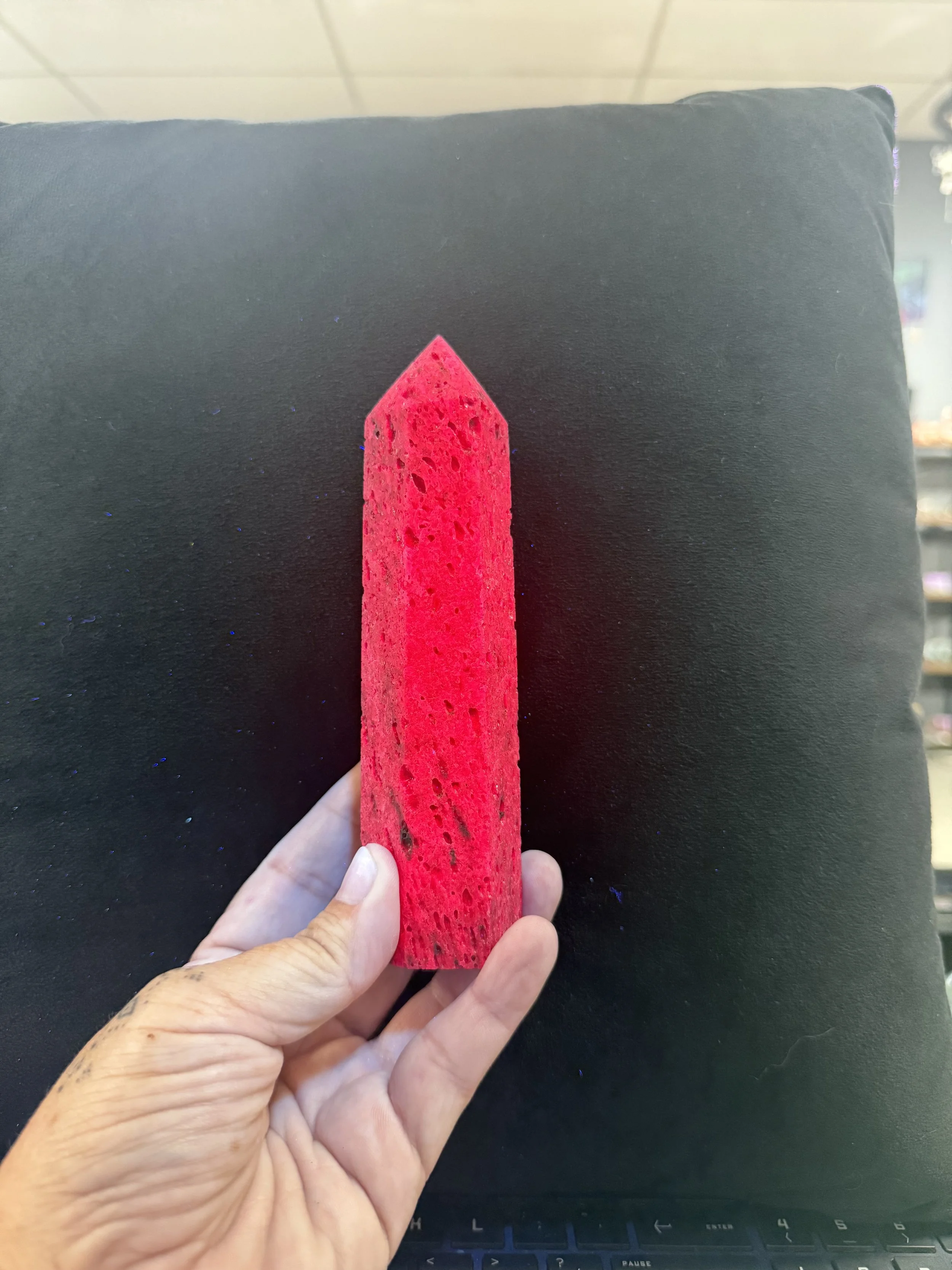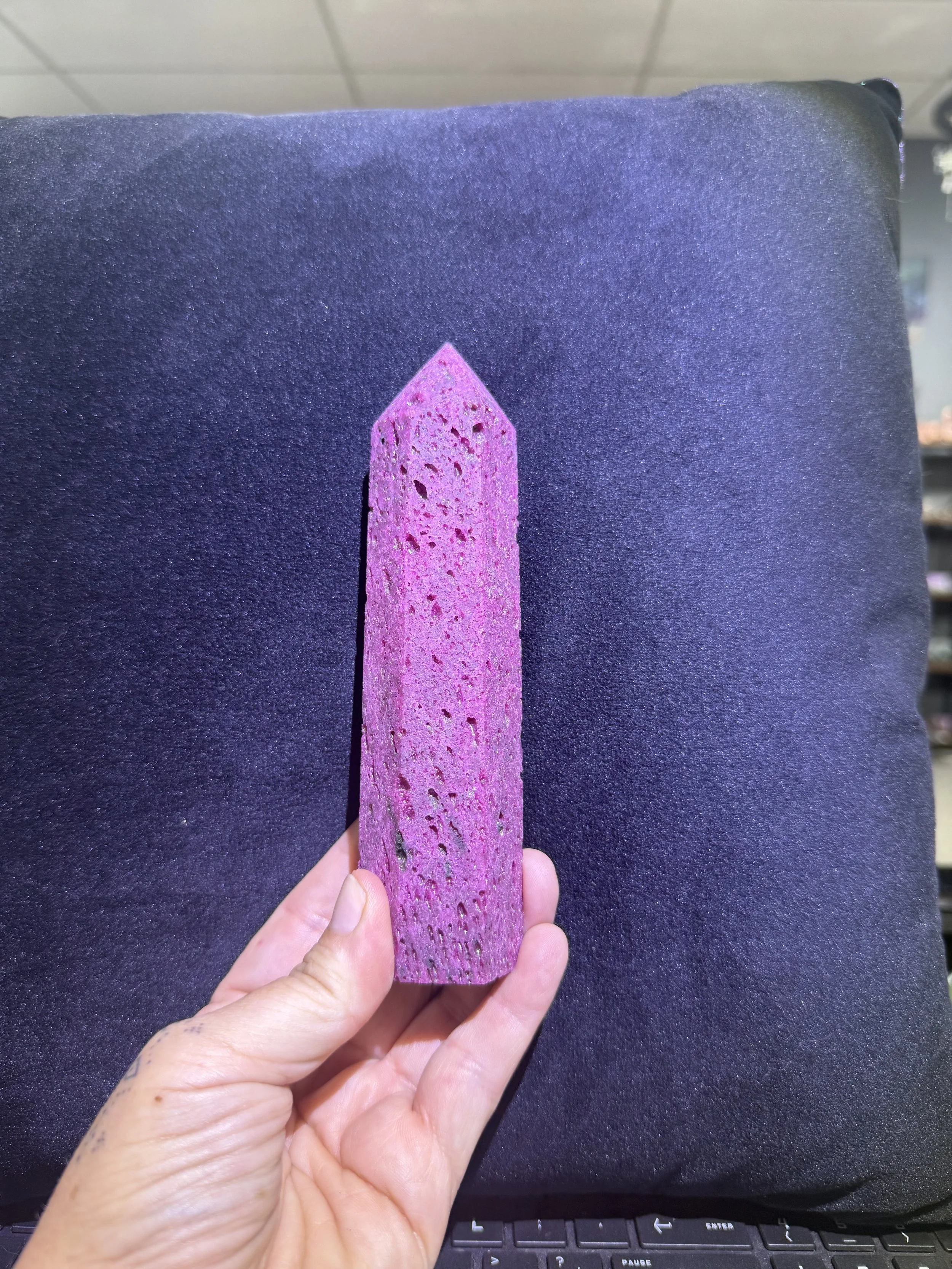 Ideal for meditation, crystal grids, or as a decorative item, a Ruby in Fuchsite tower infused with UV light energy serves as a powerful reminder to stay grounded, resilient, and open-hearted.